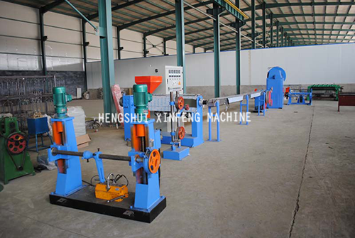 5. There are two cooling flumes, both of which are composed of inlet and outlet water pipes, water valves, flume shelf. The surface layer of the wire, which is out of the mouth mould of the machine head, is shown as soften status. So it must be cooling shaped through cooling flume. The cooling water flows out from the inlet water pipes, and the wires are thoroughly hardened when they pass from the water current. Meanwhile, the hot water is discharged from the return pipes. During the whole process, the cooling water is circulatory.