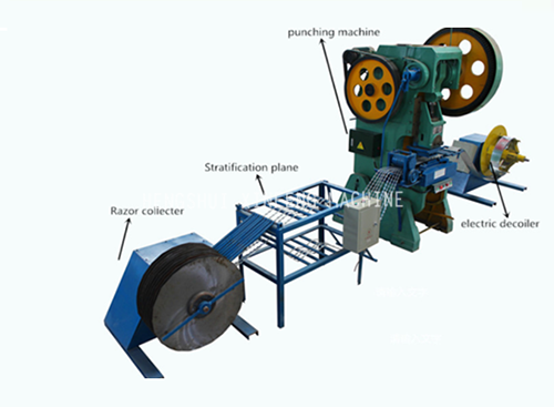 Pay-off is used for storing and offering punching and shearing material; Servo feeding device offer galvanized plate to punch as certain rhythm and the specific length; Press machine and mold are used for shearing galvanized plate to blade; Re-coiler is divided into upper and lower rolling. Re-coiler is used for dividing shearing blade into a few stripes, rolls around.